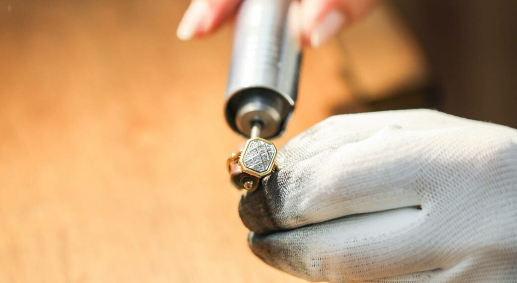 Vient ensuite le polissage, délicat et minutieux, pour effacer les micro-rayures, atténuer les marques du temps et redonner au bijou toute sa lumière.